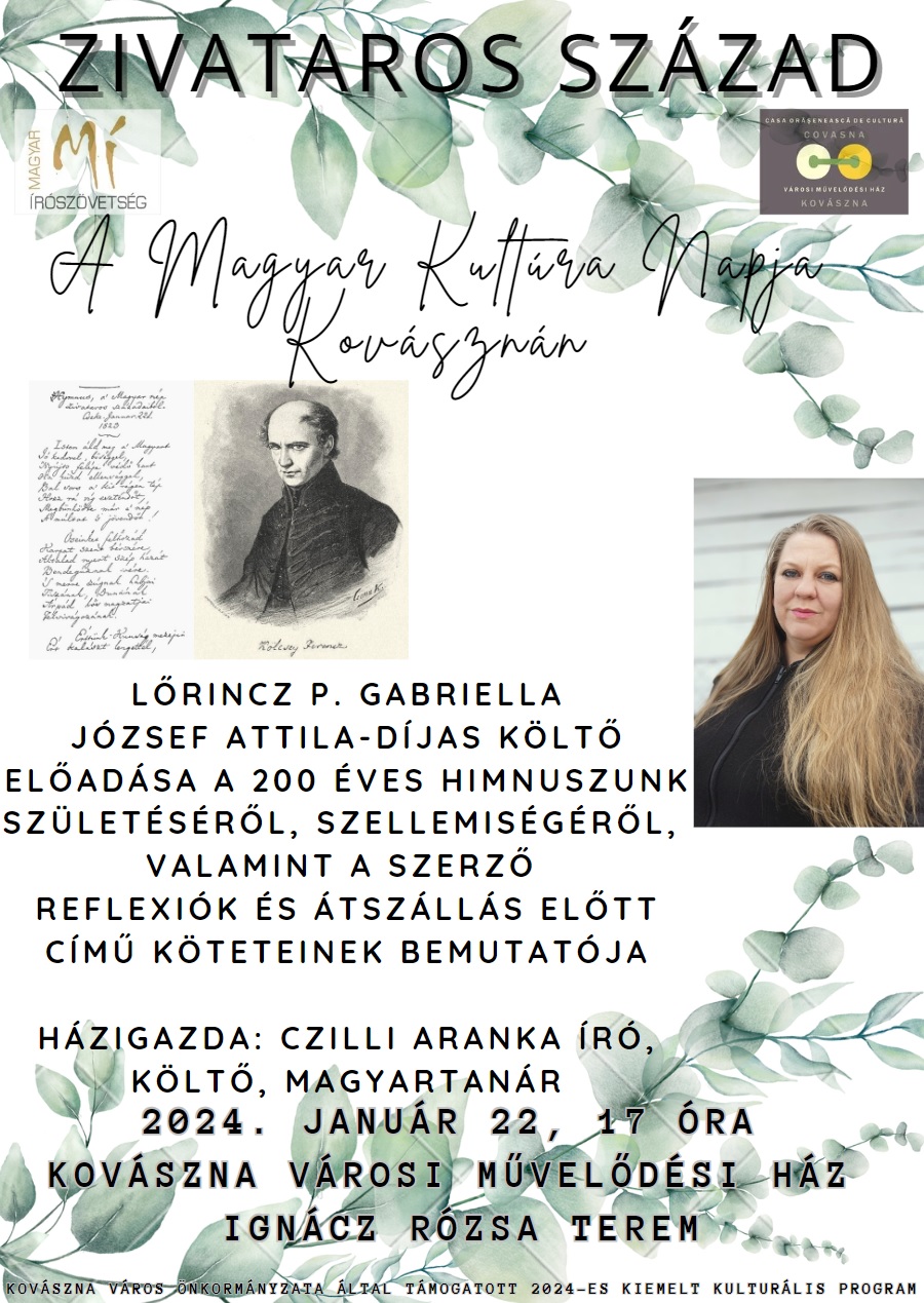 Szeretettel várunk minden érdeklődőt 2024 január 22-én, délután 5 órai kezdettel a Kovásznai Városi Művelődési Ház Ignácz Rózsa termébe, rendhagyó irodalmi rendezvényünkre.