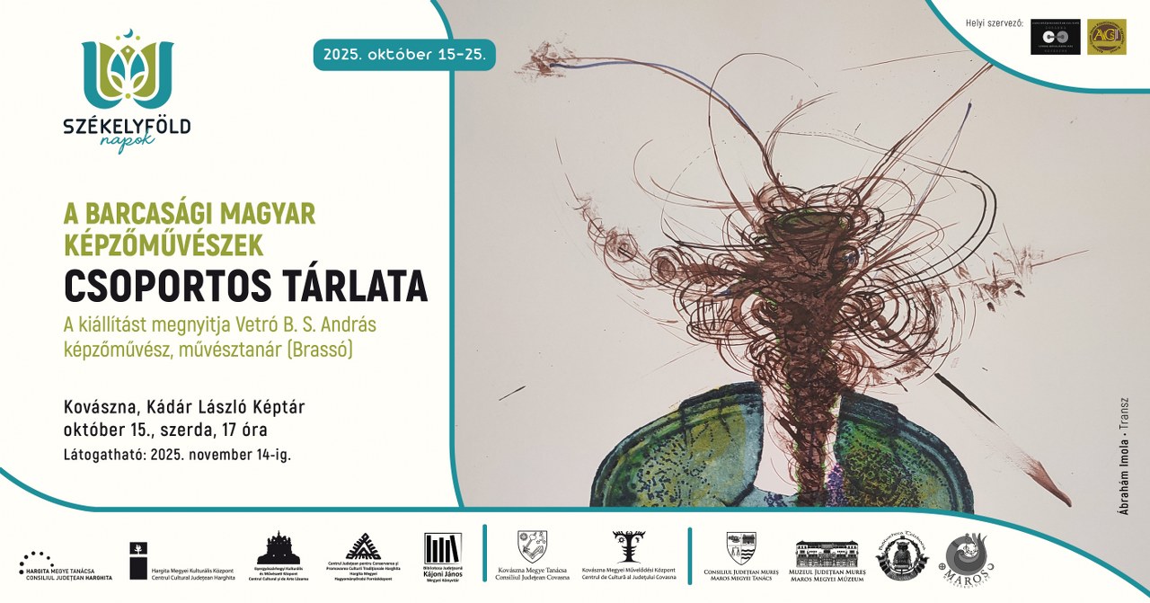 Tisztelettel meghívjuk Önt és barátait az idei Székelyföld Napok rendezvénysorozat keretében a Kovásznai Kádár László Képtárban 2025. október 15-én, szerdán 17,00 órai kezdettel megszervezett Barcasági magyar képzőművészek közös tárlatának megnyitójára.
