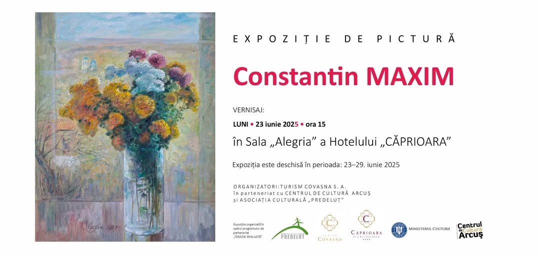 Vă invităm să descoperiți universul cromatic al artistului Constantin Maxim, într-o expoziție ce aduce sensibilitate și profunzime în fiecare tușă de pensulă.