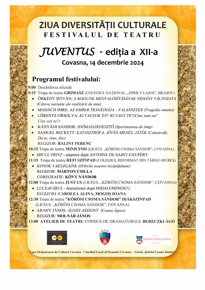 12:00 Trupa de teatru JUST US (LICEUL ,,KŐRÖSI CSOMA SÁNDOR”, COVASNA)
